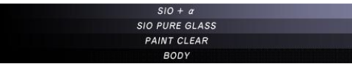 分子量が小さいことは、ガラス被膜としての安定化にもなります。ポリシラザン系のガラス被膜の膜厚は1μm未満ですが、我々の低分子量ガラス被膜は約2~4μmという圧倒的な膜厚を確保できております。この圧倒的な膜厚により被膜自体の耐久性が増し、ボディーの塗装への外部環境からの保護に重要な役割を果たしております。