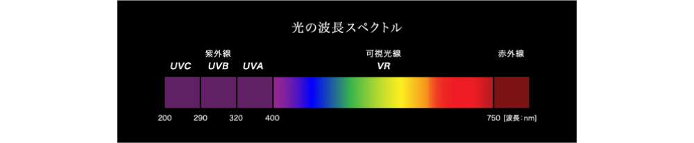 紫外線について、簡単に説明させて頂きます。まずは、上記画像をご覧ください。紫外線はその波長の大きさにより3種類に分けられます。