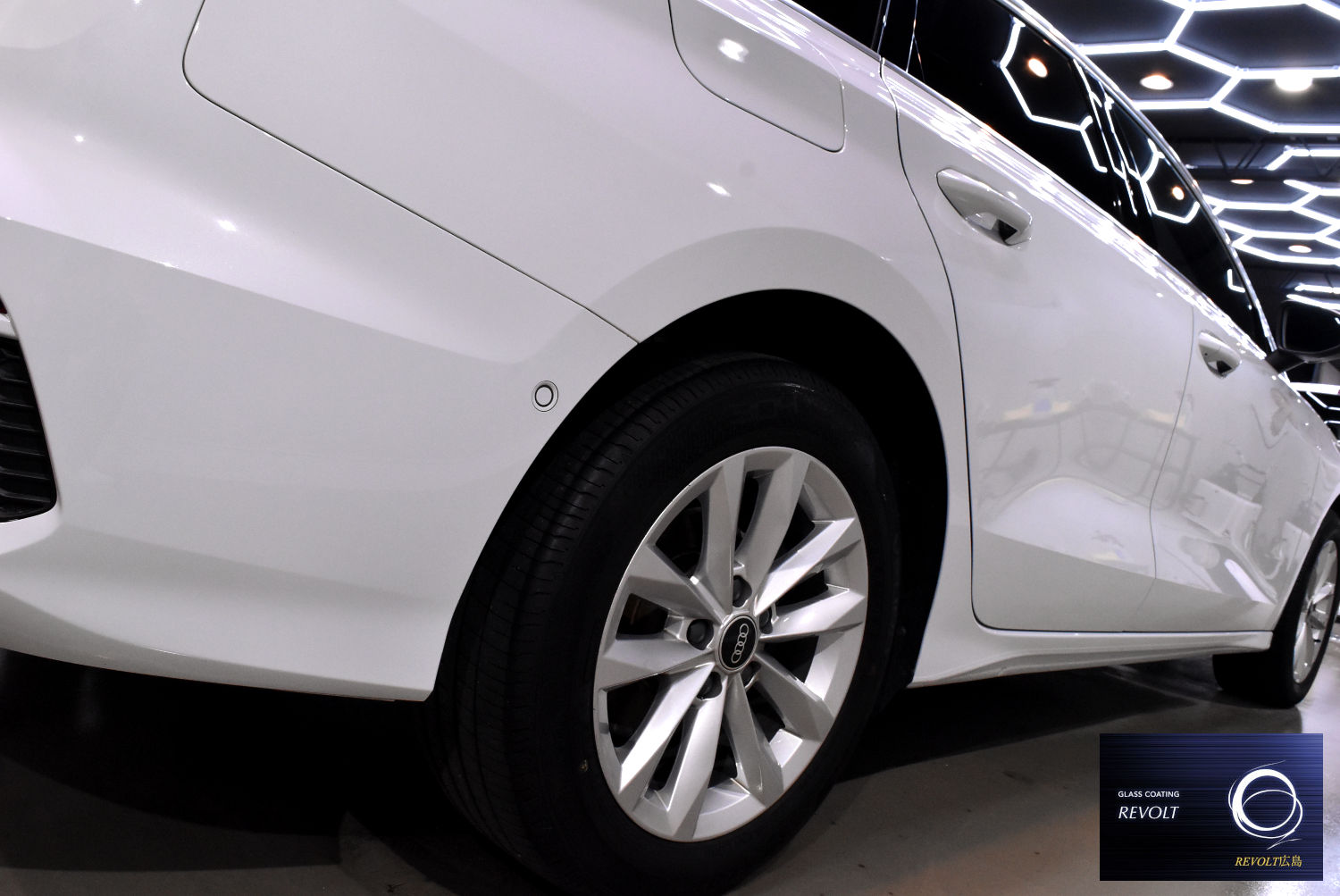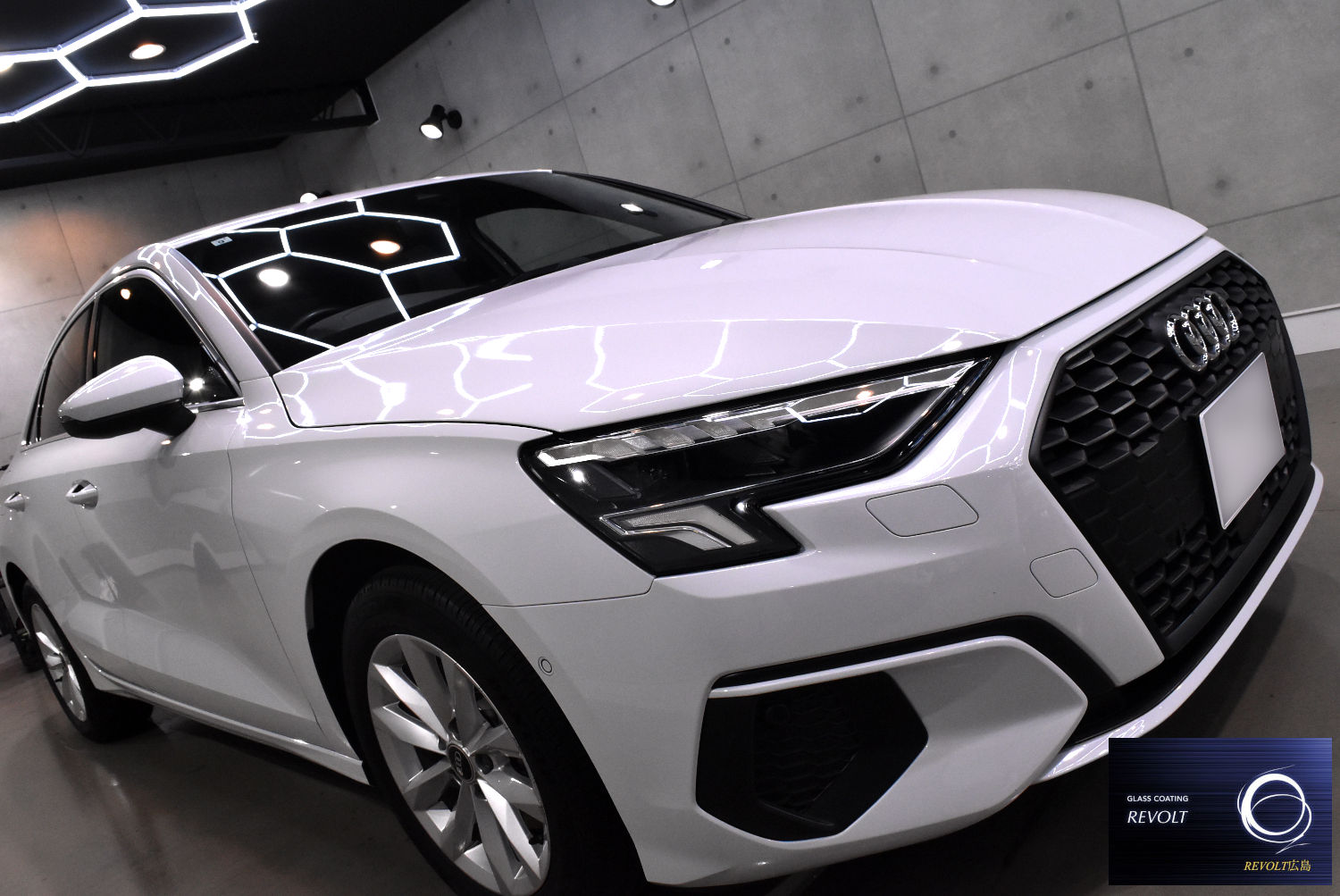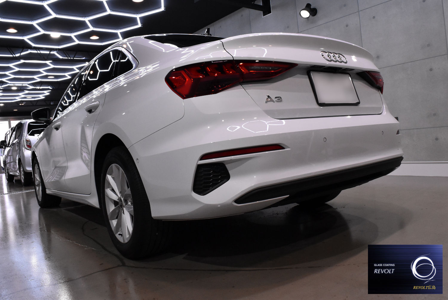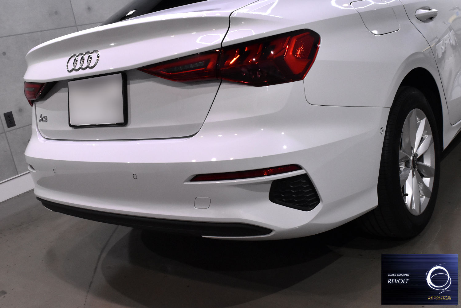 施工後は、A3セダンの美しいボディラインがより際立ち、透明感のある艶と上質な輝きを感じられる仕上がりとなりました。プレミアムコンパクトにふさわしい、美しく整えられた一台となりました。
