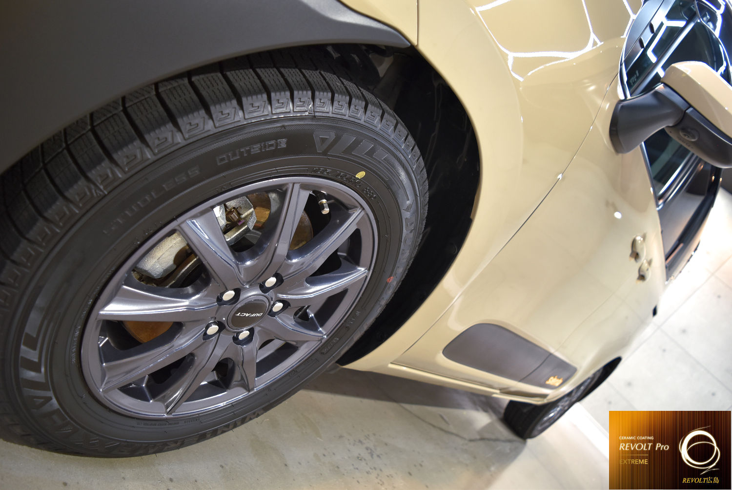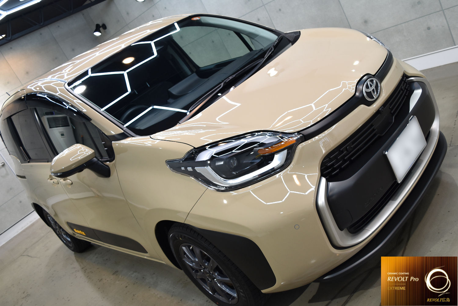 下地処理後は、最上級セラミックコーティング 「リボルト・プロ エクストリーム」 を施工。高密度のセラミック被膜がボディを強固に保護し、深みのある艶と滑らかな質感を実現します。優れた耐久性と防汚性能により、長期間にわたり美しい状態を維持しやすくなります。