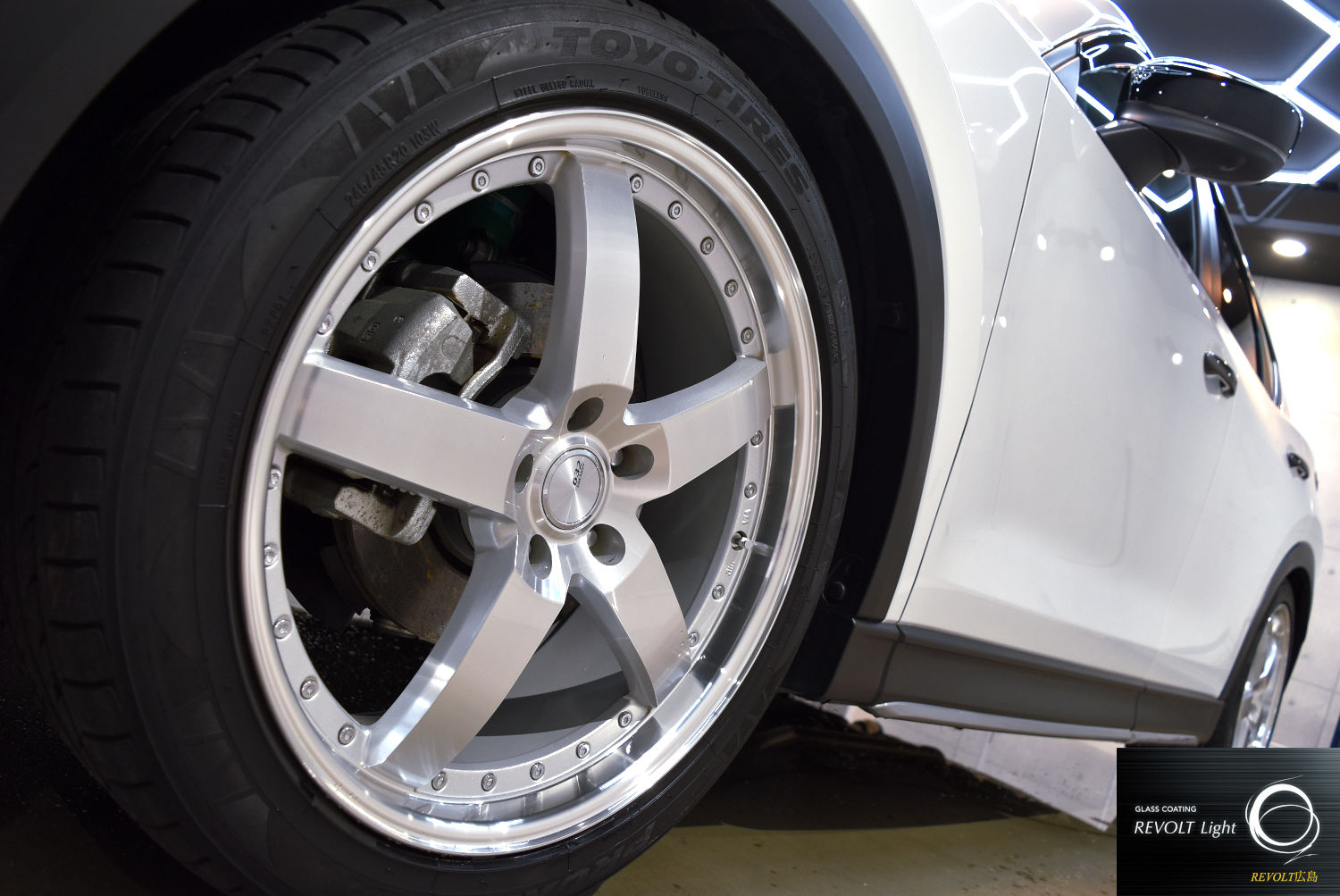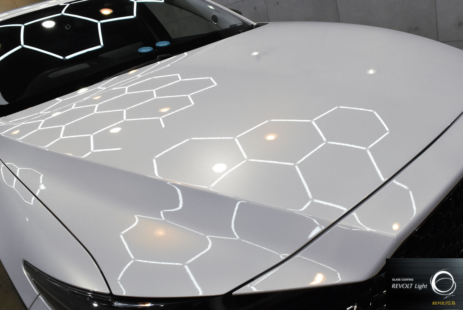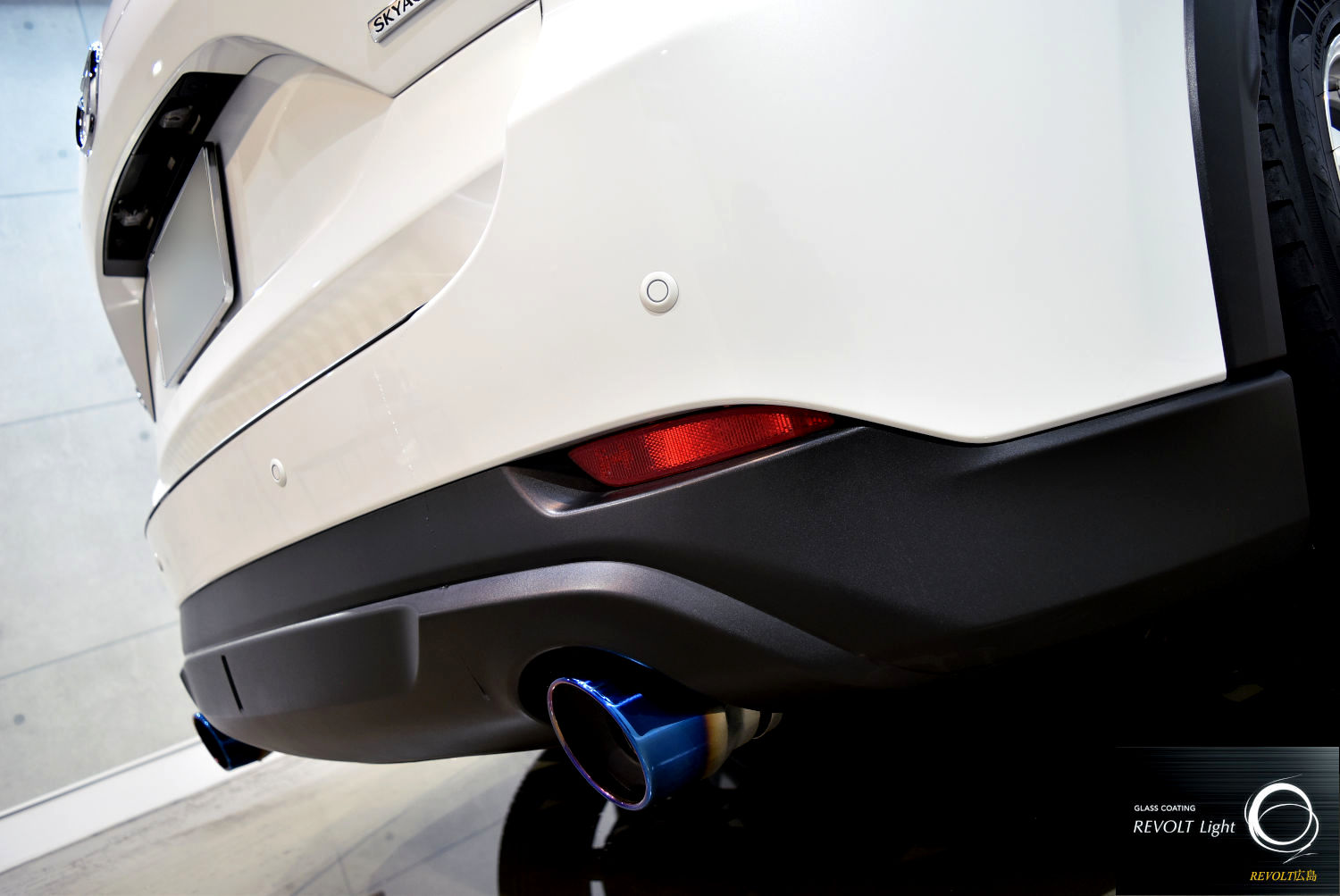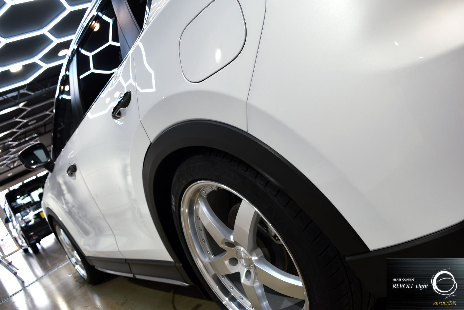 その後、「リボルトライト」を施工。ガラス系コーティングにより、塗装面に自然で美しい艶を与えるとともに、ボディをしっかりと保護します。汚れが付着しにくく、日常のお手入れも行いやすくなるのが特徴です。